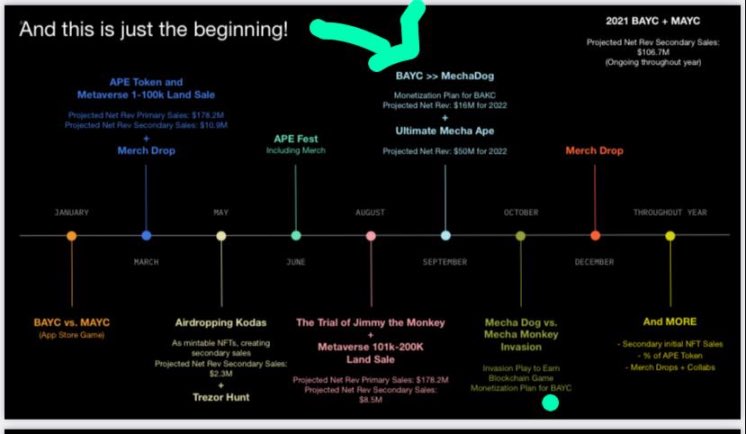 - March: APE Token and Metaverse 1-100k Land Sale (Projected $180m revenue)